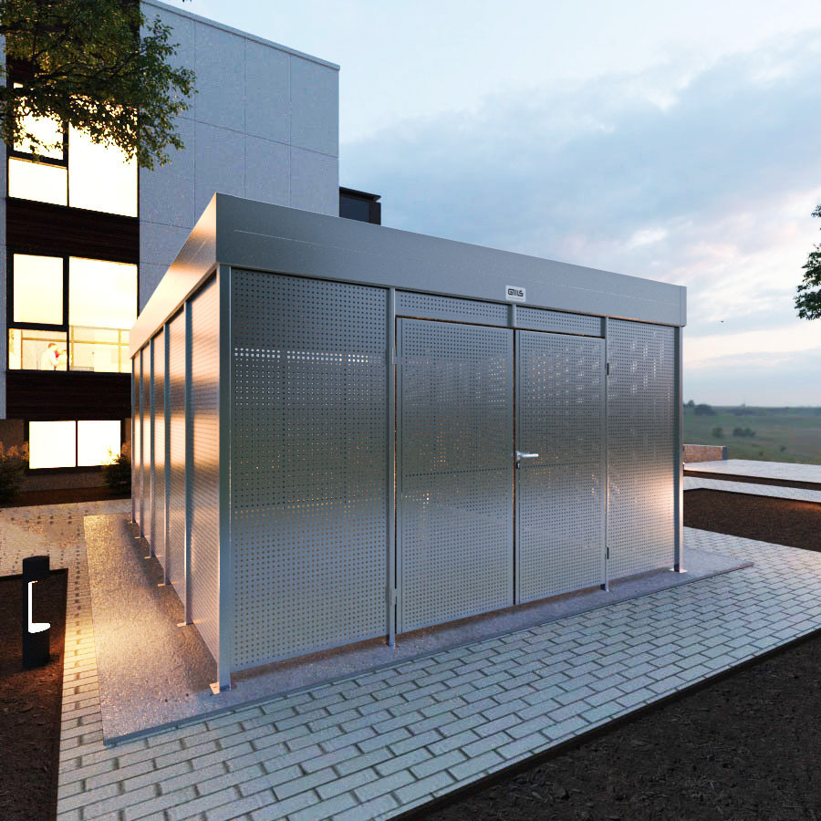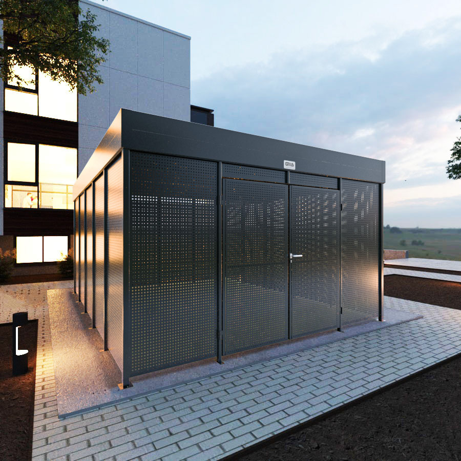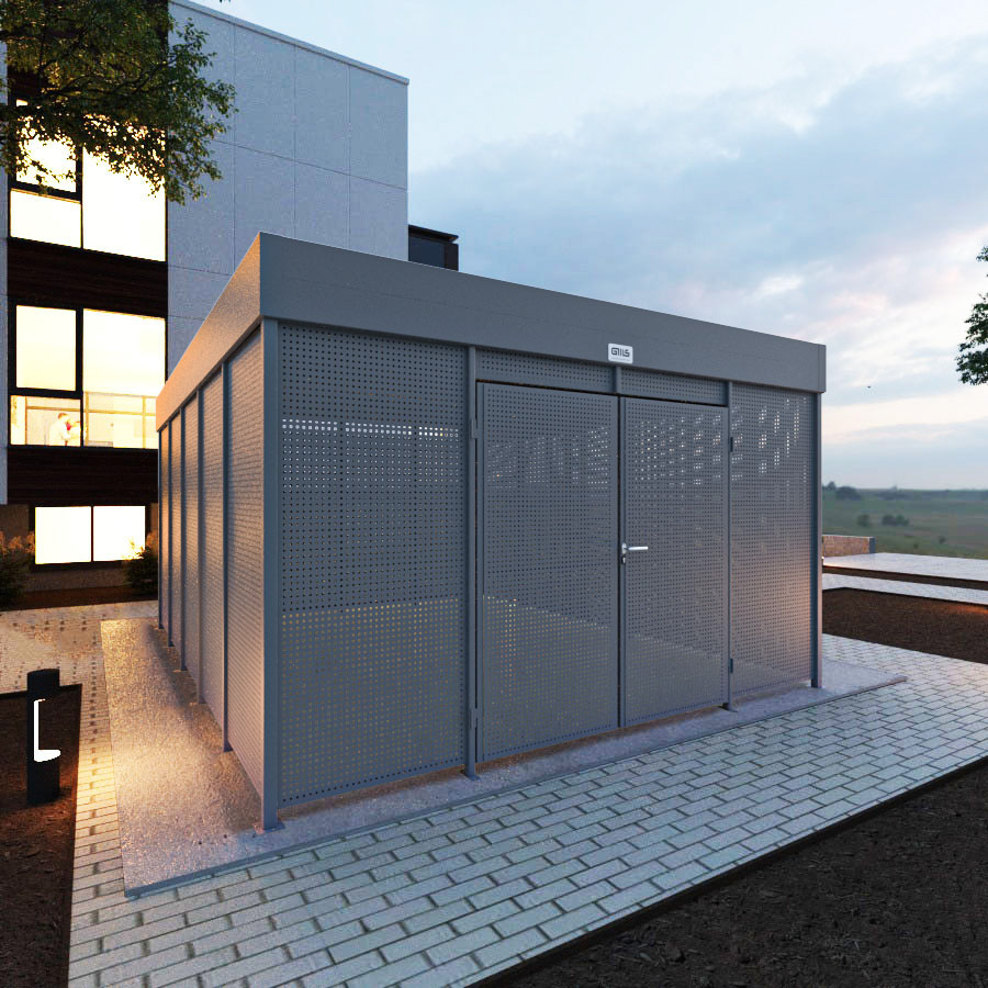 Nowoczesna altana śmietnikowa to estetyczne i trwałe rozwiązanie do zabudowy pojemników na odpady przy budynkach mieszkalnych, firmach i osiedlach. Solidna stalowa konstrukcja, zabezpieczona ocynkiem i malowaniem proszkowym, gwarantuje odporność na warunki atmosferyczne oraz długą żywotność. Nowoczesna Altana Śmietnikowa ceny już od 21 574zł