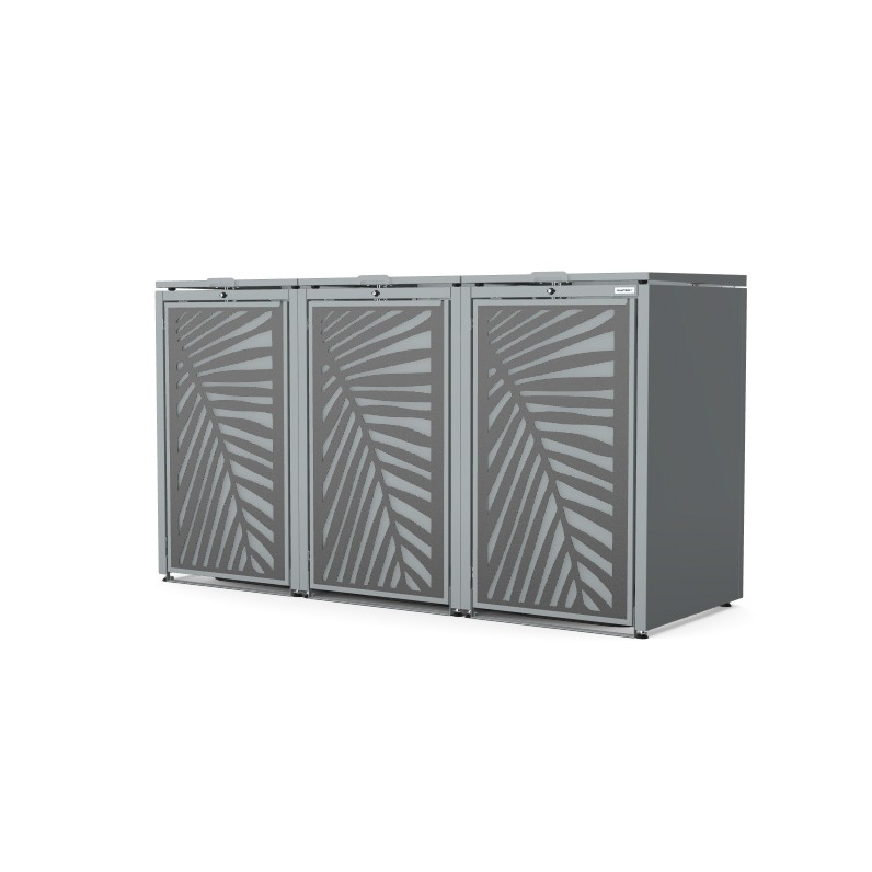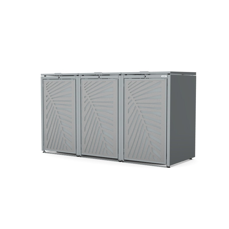 Obudowy posiadają uniwersalne wymiary, umożliwiające zastosowanie pojemników o pojemności od 120 do 240 litrów. Zarówno solidna konstrukcja, jak i drzwi frontowe wykonane ze stali ocynkowanej podkreślają nowoczesny, minimalistyczny charakter produktu, zapewniając jednocześnie wysoką odporność na warunki atmosferyczne oraz trwałość na lata.