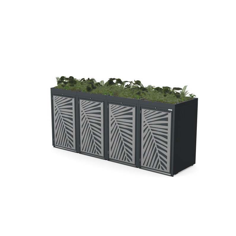 Obudowy posiadają uniwersalne wymiary, umożliwiające zastosowanie pojemników o pojemności od 120 do 240 litrów. Zarówno solidna konstrukcja, jak i drzwi frontowe wykonane ze stali ocynkowanej podkreślają nowoczesny, minimalistyczny charakter produktu, zapewniając jednocześnie wysoką odporność na warunki atmosferyczne oraz trwałość na lata.