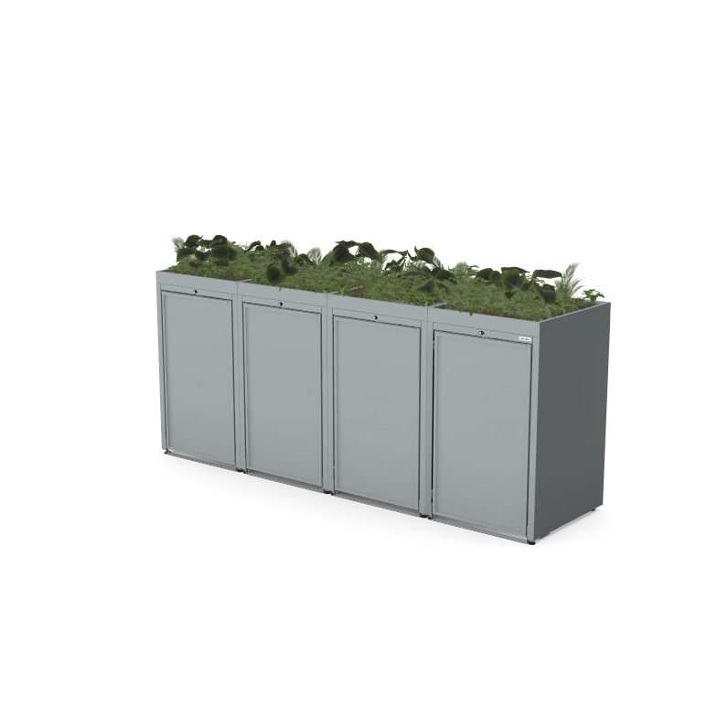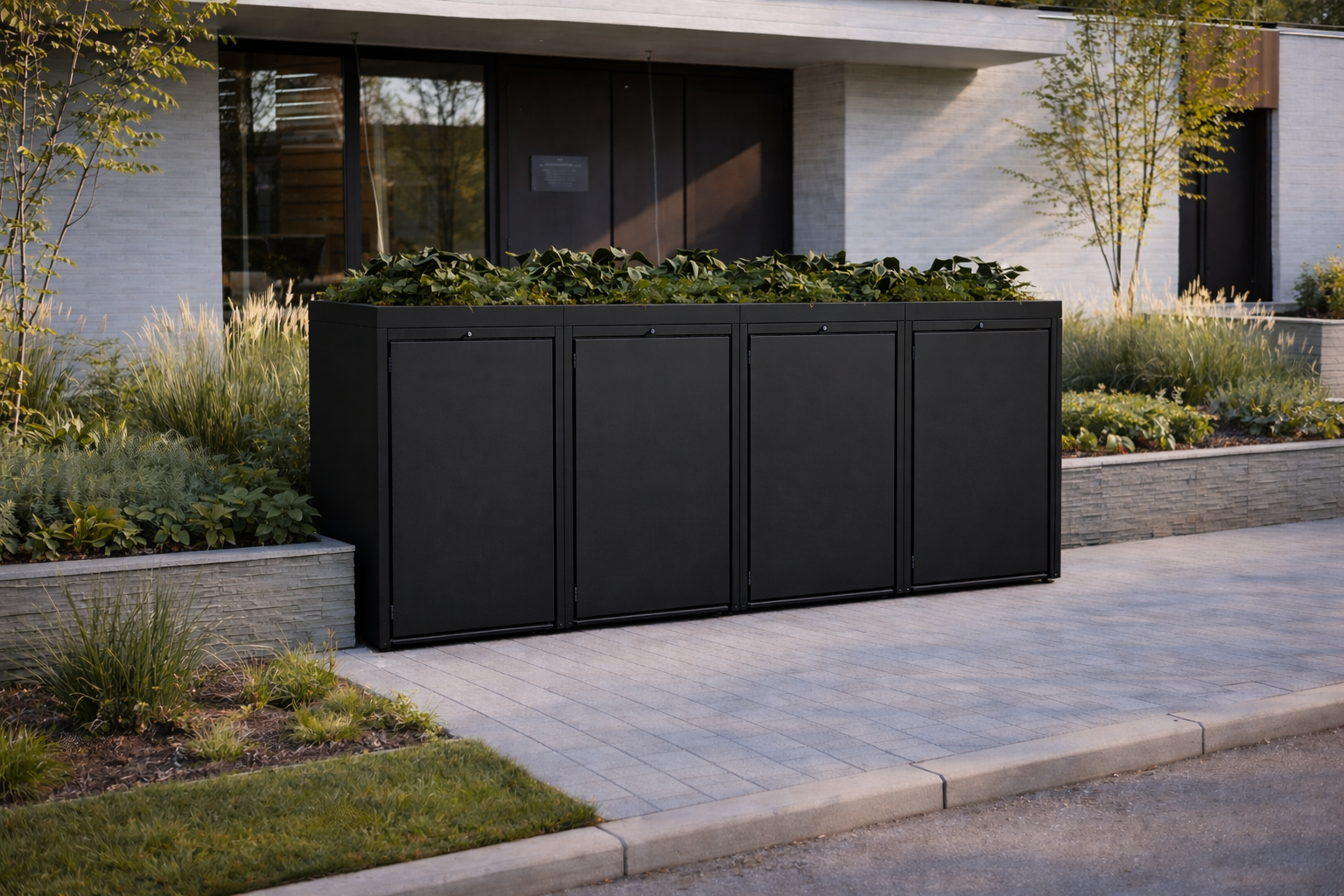 Obudowy posiadają uniwersalne wymiary, umożliwiające zastosowanie pojemników o pojemności od 120 do 240 litrów. Zarówno solidna konstrukcja, jak i drzwi frontowe wykonane ze stali ocynkowanej podkreślają nowoczesny, minimalistyczny charakter produktu, zapewniając jednocześnie wysoką odporność na warunki atmosferyczne oraz trwałość na lata.