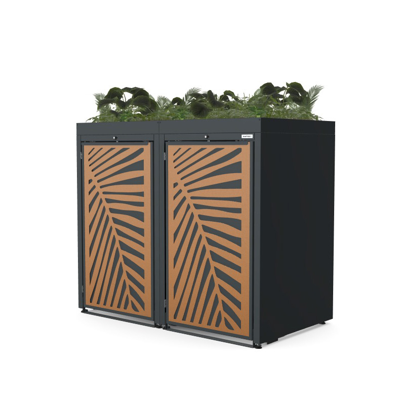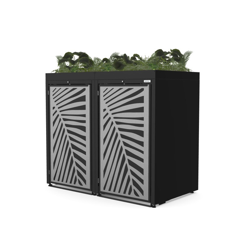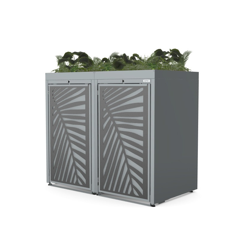 Obudowy posiadają uniwersalne wymiary, umożliwiające zastosowanie pojemników o pojemności od 120 do 240 litrów. Zarówno solidna konstrukcja, jak i drzwi frontowe wykonane ze stali ocynkowanej podkreślają nowoczesny, minimalistyczny charakter produktu, zapewniając jednocześnie wysoką odporność na warunki atmosferyczne oraz trwałość na lata.