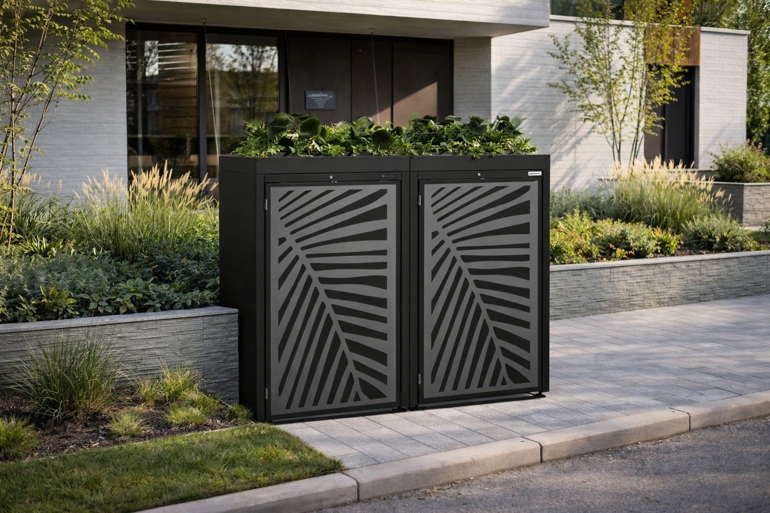 TOP BOX INDIVIDUAL to stylowe i funkcjonalne modułowe systemy zabudowy pojemników, zaprojektowane z myślą o nowoczesnych przestrzeniach przydomowych. Prosta, minimalistyczna forma sprawia, że obudowa doskonale komponuje się z współczesną architekturą, nadając otoczeniu elegancki i uporządkowany wygląd.