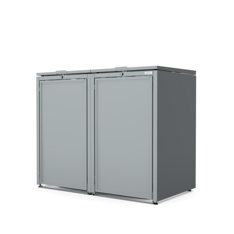 Obudowy posiadają uniwersalne wymiary, umożliwiające zastosowanie pojemników o pojemności od 120 do 240 litrów. Zarówno solidna konstrukcja, jak i drzwi frontowe wykonane ze stali ocynkowanej podkreślają nowoczesny, minimalistyczny charakter produktu, zapewniając jednocześnie wysoką odporność na warunki atmosferyczne oraz trwałość na lata.